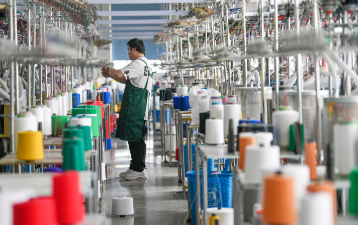 5月12日,位于杭州临安的陌上花电脑针织有限公司,车间内一派繁忙的生产景象,各种颜色的针织线通过一台台电脑圆机,编织出了一条条颜色鲜艳的女足世界杯球迷围巾。